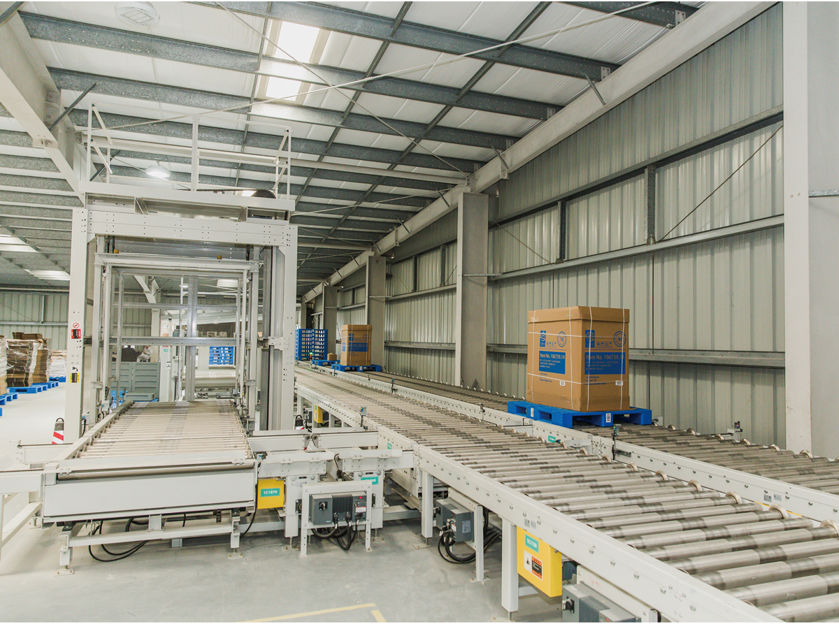 爱仕达智能制造工厂采用近3KM托盘式输送线的输送分拣系统,产品涉及托盘输送平台、垂直提升系统,RGV系统等智能物流产品,通过整体区域的合理化部署,配合生产线末端包装使用RGV系统来进行包材出入库以实现了现场环境的总体提升;空中连廊形式的设计实现1-3号工厂的直接连通需求,使转运成本大大降低。